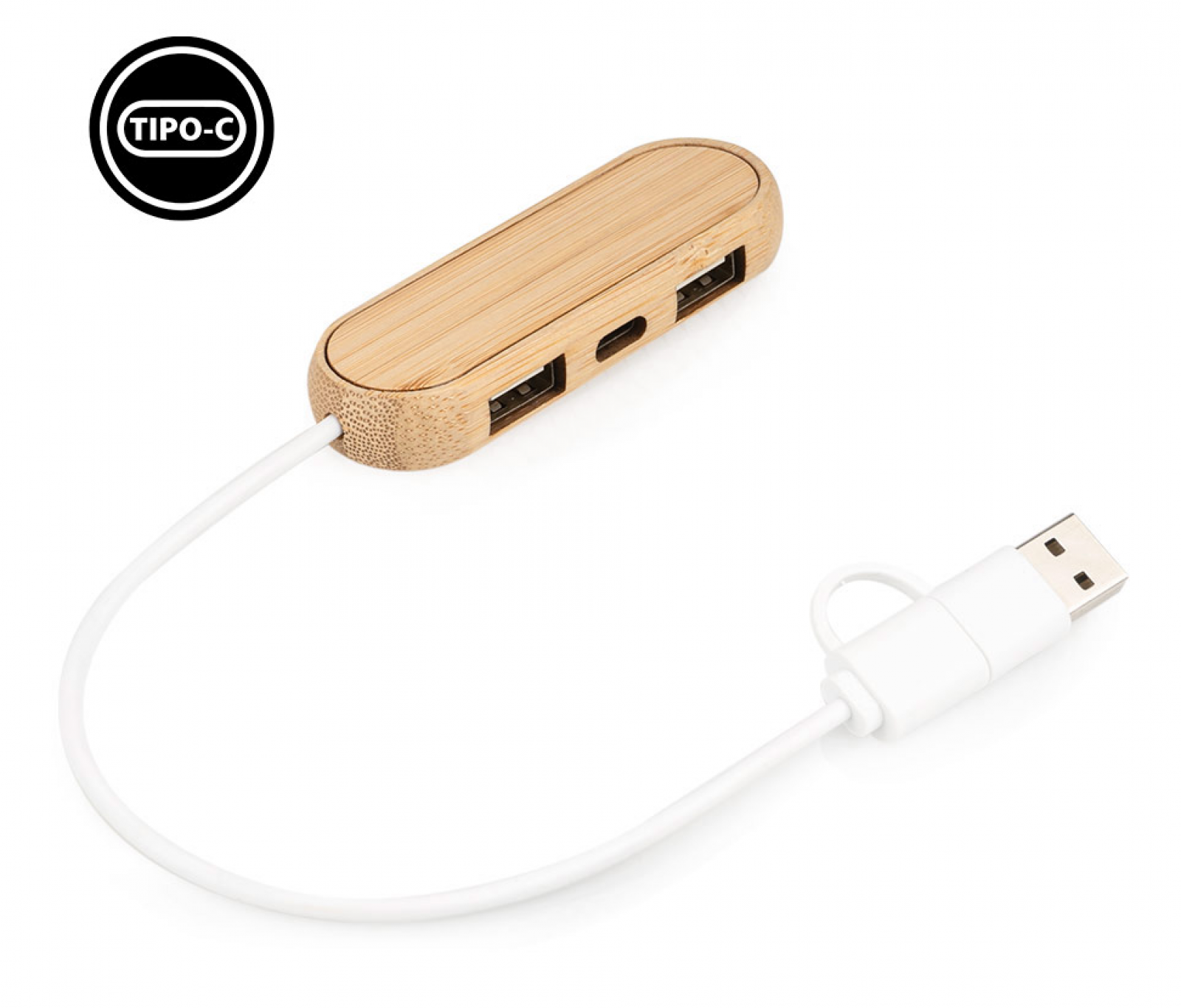 Multipuerto USB 2.0 que incluye dos puertos de salida USB-A para carga y transmisión de datos, y un puerto Tipo-C para las mismas funciones. Además, cuenta con puertos de entrada USB-A y Tipo-C.